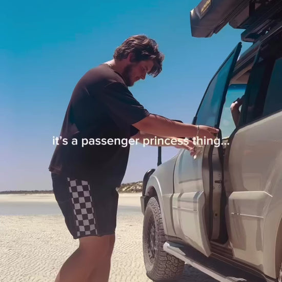 Designed based off our most viral video over at @onshoretravel, this tee’s for the sassy co-pilots who run the road trip — snacks, tunes, maps and all. Because long days in the passenger seat deserve princess-level comfort.